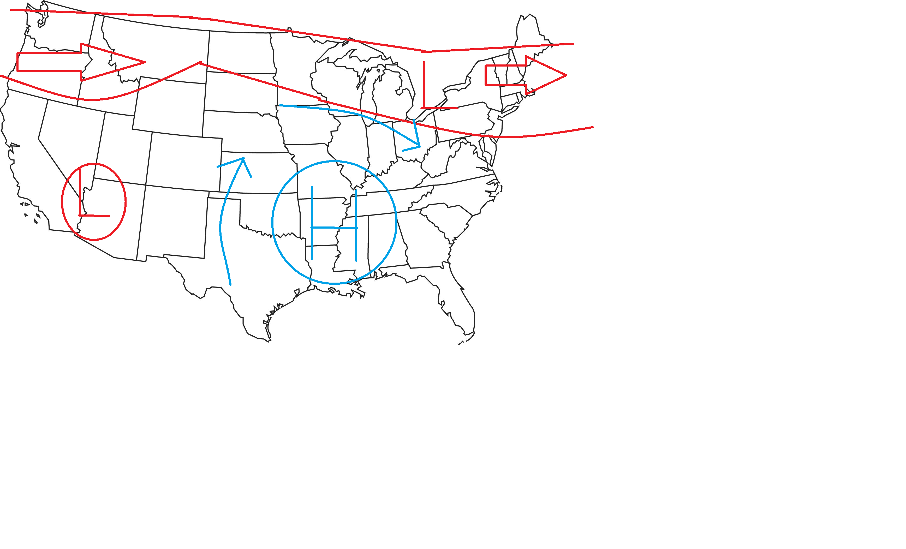 We will keep an eye on the MJO in this time. If a wave holds together it will likely be heading into phases 4-5 in the 3rd week of June, which can trigger the E. Pacific jet. However, heading into week 4, the W. US will clear out and the E. US will have to deal with the rain and seasonal temps. I think the S/SE US will have a quasi-stationary high pressure throughout the month of June with periods of relief as the Pacific storms move through weeks 1-3. This will create a more zonal pattern, especially weeks 3-4.