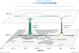 The last week or so there has been a bit of a disruption to the S. Pacific zonal flow, vectors pointing equatorward around the Dateline. With latest MJO wave departing the E. Pacific, renewed easterly winds along the equator prevail. We still see easterlies at 100E, but if there is an MJO wave that can maintain itself, we can begin to see tropical-extratropical interaction and mid-latitude tropical forcing that will cause a feedback loop into the W. Pacific enhancing westerly flow.