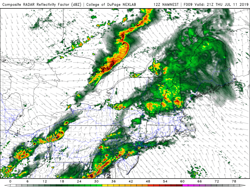 NAM simulated radar for 11 AM appears a bit more ambitious with the front running precip near our area. A little bit too aggressive with the heavy rainfall.