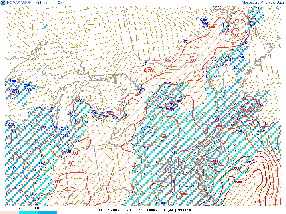 Presently we have CAPE values already exceeding 3000 J/kg in some locations. The more sun we get, the most unstable the airmass becomes to help support stronger storms later on with remnants of Barry’s approach.