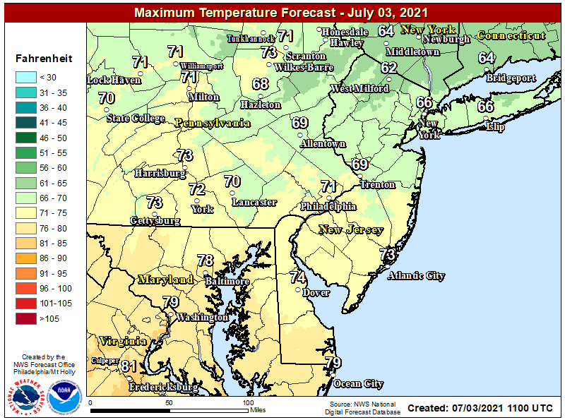 Temperature Forecast for today is pretty nice for July.