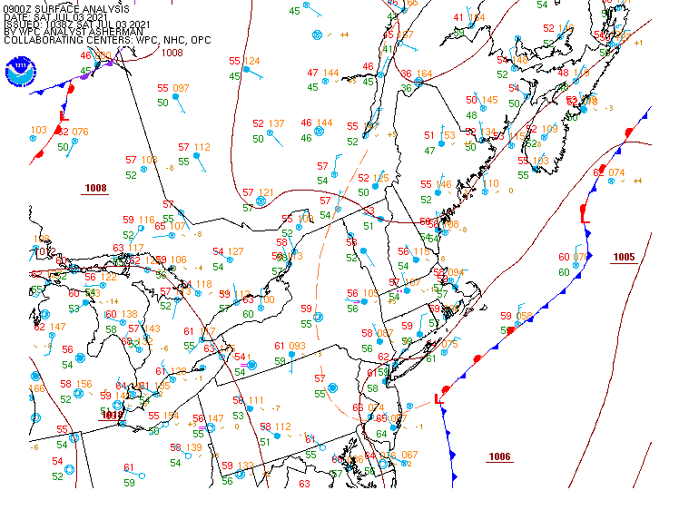 Surface Low just off NJ coast, this is part of the system that brought rains yesterday