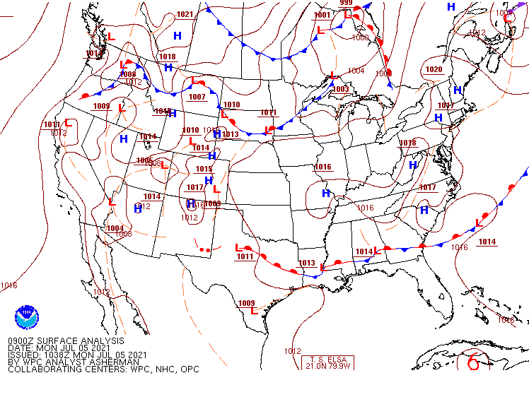 Keeping track of Elsa in the tropics. She will get scooped up by a cold front later this week, but looks increasingly likely she will pass to the south as a weak tropical system.