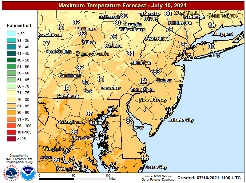 Temperature today should be in the low 80s. Our average high temperature is near 88. A nice day overall.