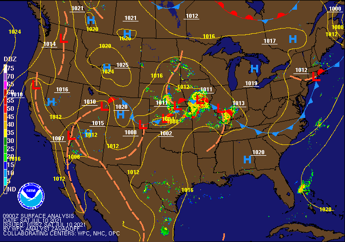 Wide angle view shows high pressure moving in. Weak disturbance lingers over NYC/Pa border.