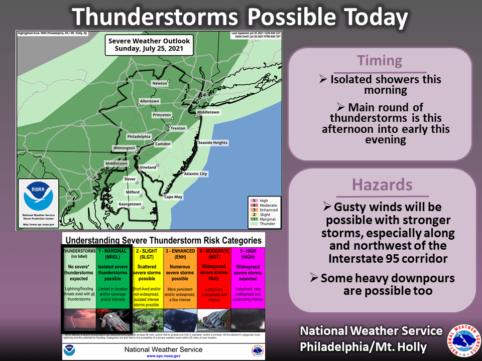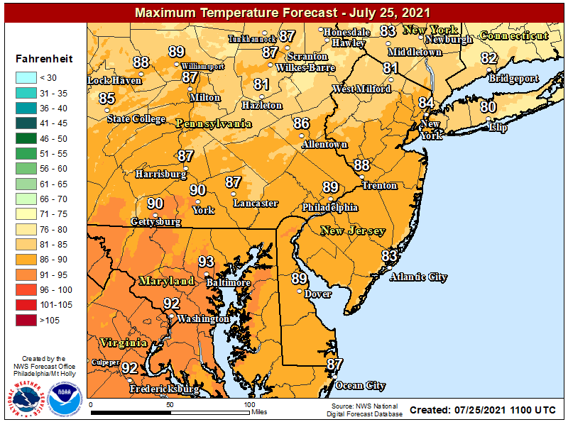 We are going to be around our normal high temperatures today. Down the shore not a huge relief as we will be getting some southerly winds. Areas that get thunderstorms later will probably drop to the mid-70s.