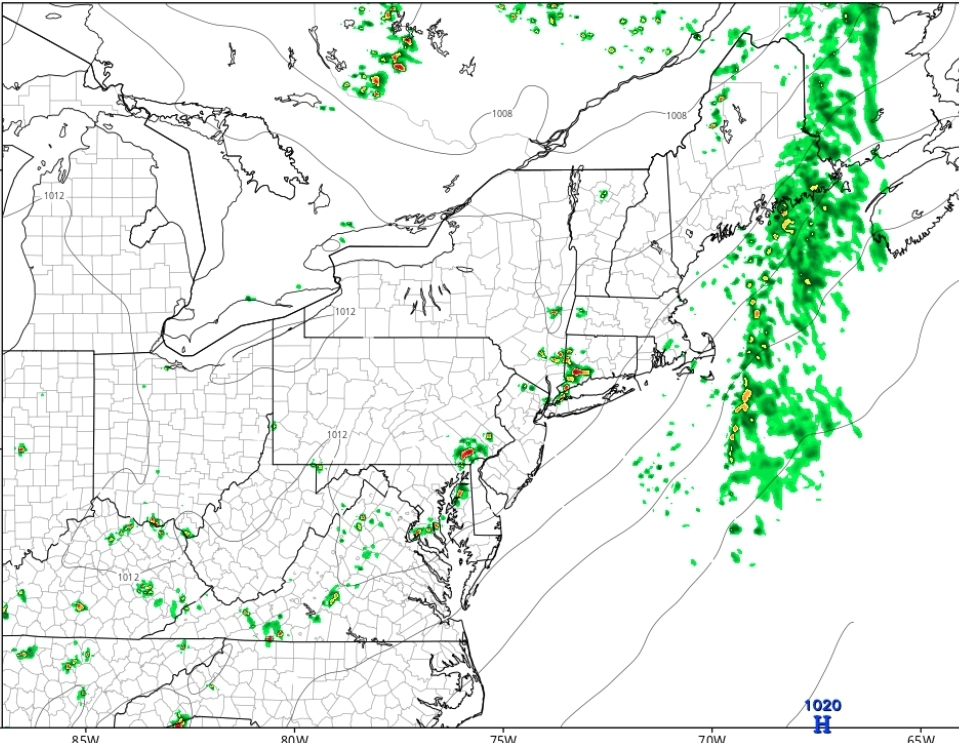Overnight we had some showers move through. Most of the area received less than 0.5″ of rain. This was associated with a warm front that is now off shore. Main cold front is back to the west.