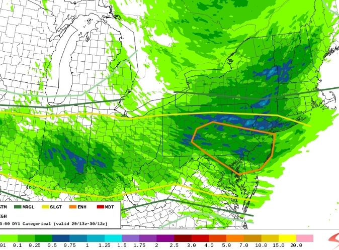 HREF ensembles with a good soaking of rain within the storms. Some may go over an inch of rain. There is a chance that some of the storms split the area, with some dropping south into south Central PA and some going up toward the Lehigh Valley