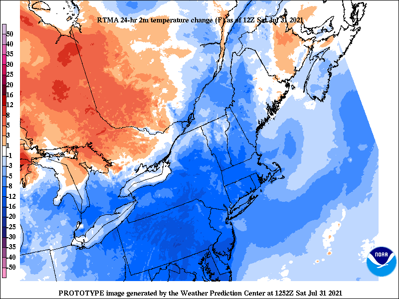 24 hour changes in temperature from this time yesterday. Most of the area cooled down.