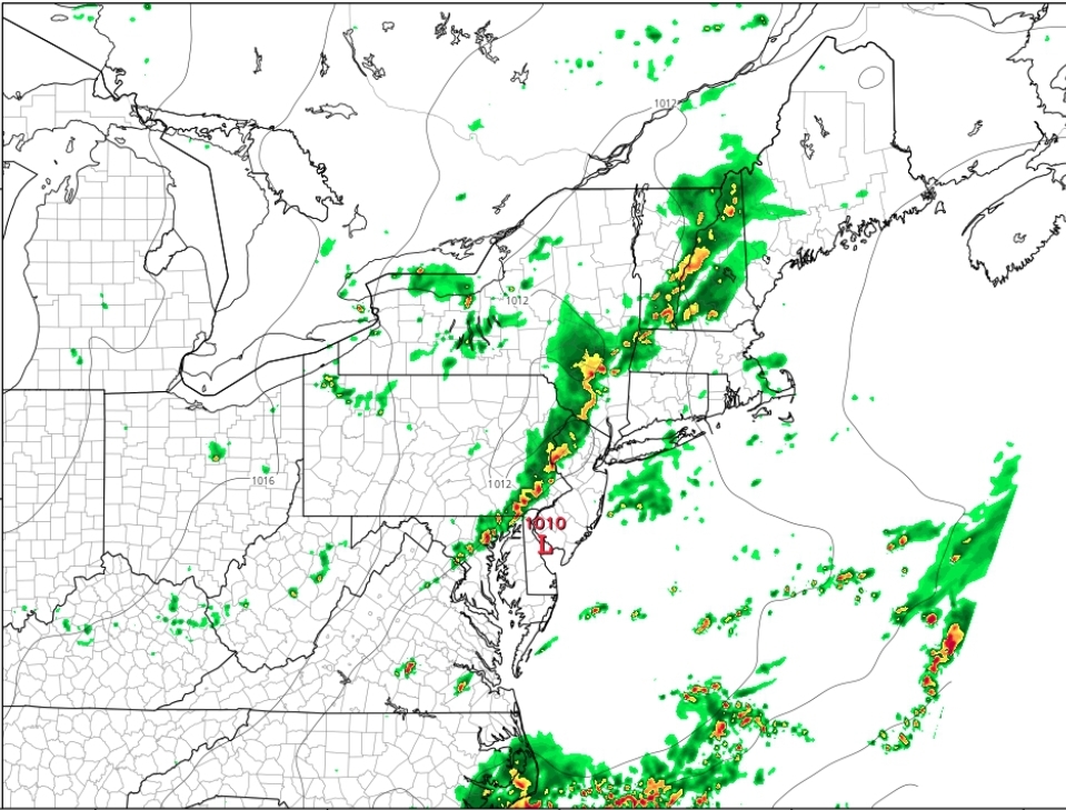You can see the larger low pressure to our north on this surface pressure map. Some bulging of the isobars in Virginia is a weak low pressure trying to develop. As you can see, plenty of easterly wind off the ocean in SEPA and SNJ.