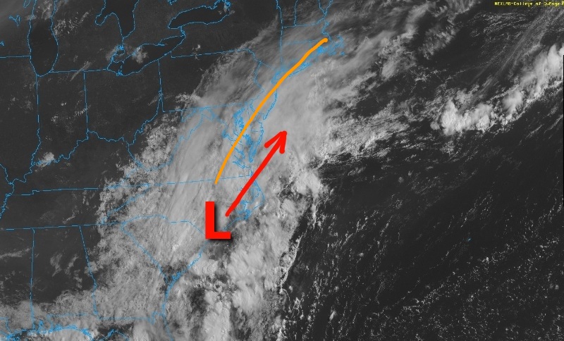 WPC has it moving off the coast slowly over the next day and a half. Should be off the Delmarva coast by tomorrow night