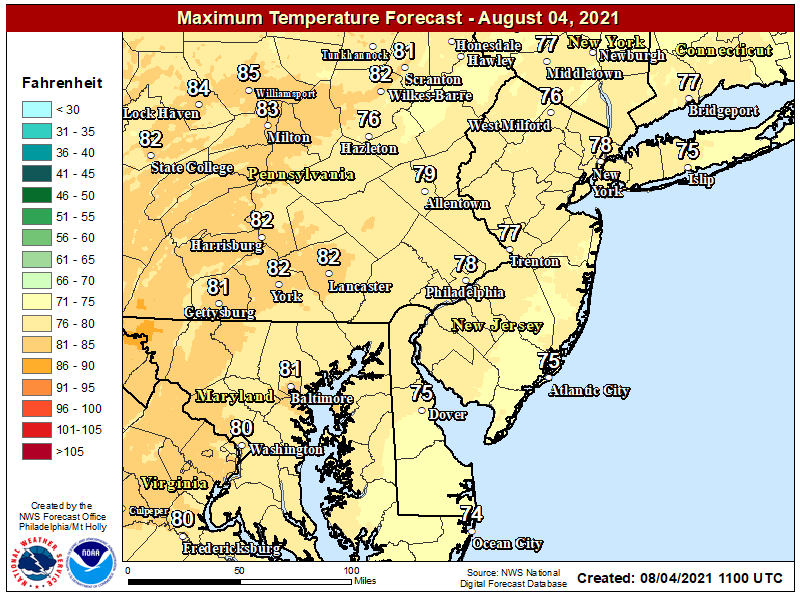 Southern Delaware and Maryland could get up to 0.5″ of rain, mostly a nuisance for others. Atlantic City could get 0.25″ of rain