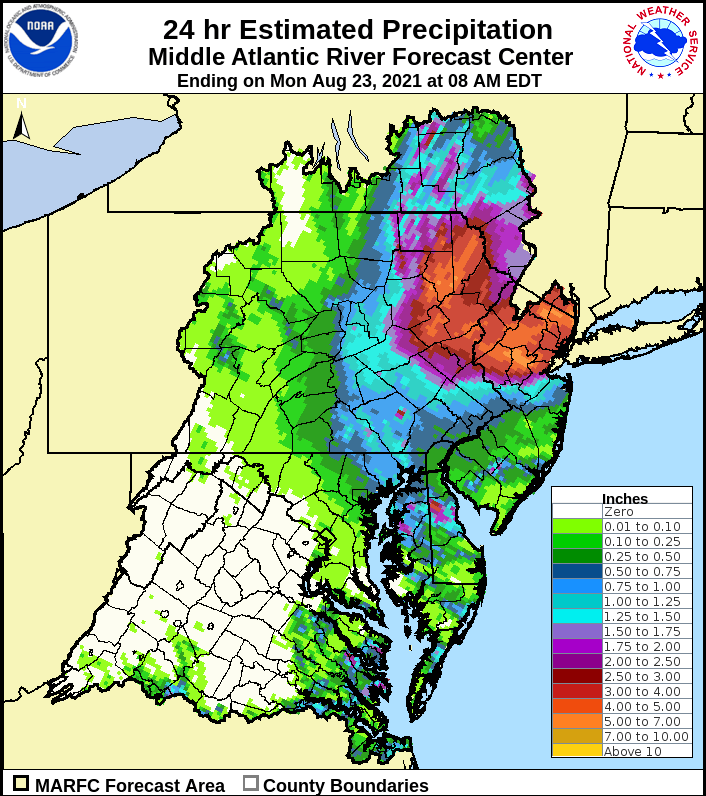 By far the biggest weather story has been flooding. There are huge rain amounts and flood warnings remain in effect. This was a concern I expressed on Twitter leading up to the storm. Be careful in flooded roadways and try to find and alternative route. Widespread 4-6″ of rain.