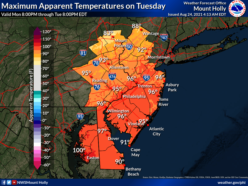 Temperatures today expected to reach around 90 degrees in the city, when combined with the dewpoints, close to 95. We do the same tomorrow, except add a degree or two.