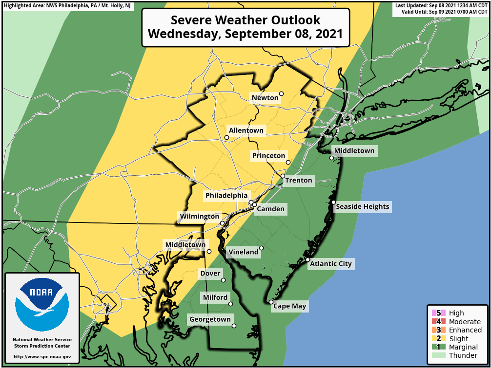The NWS/SPC have our area with increased risk for severe weather today.