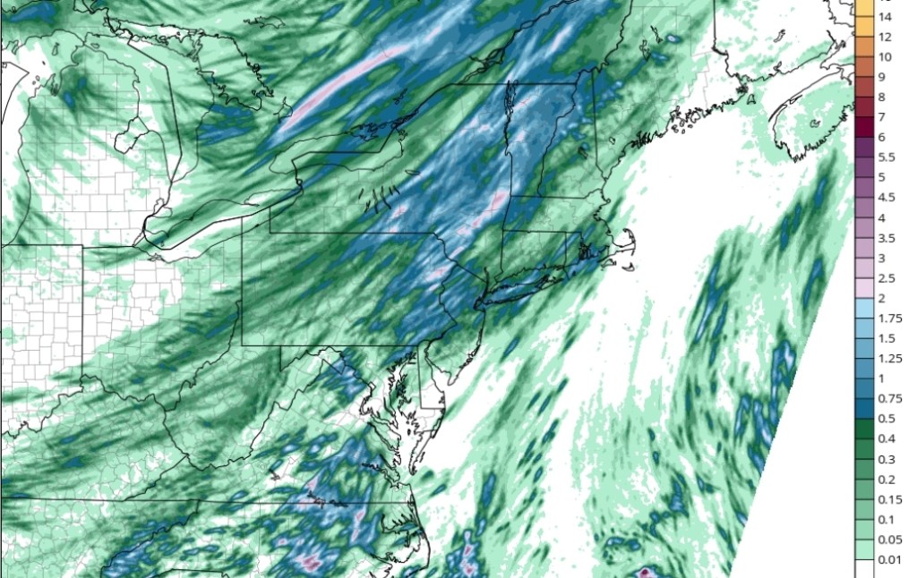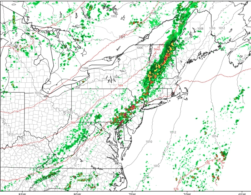 NAM model shows cluster of storms and heavy rainfall this evening.