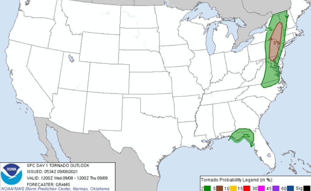 The NWS has our area in a slight chance for tornadoes too. This doesn’t appear to be a very large outbreak, but the chance exists for isolated tornadoes.