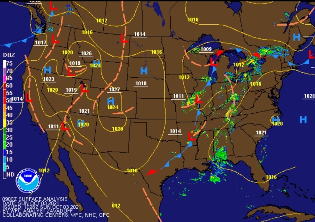Stalled frontal boundary to the north and low pressure slowly encroaching the EPA area.