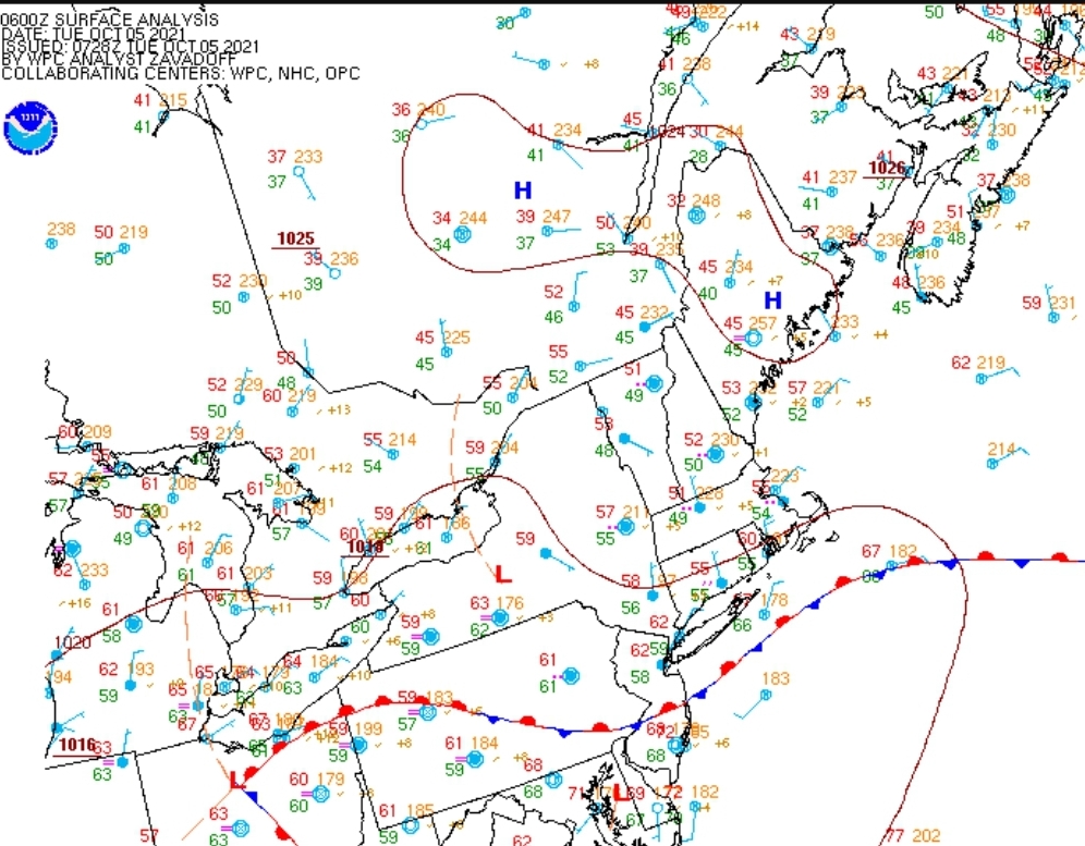 We have a stalled front draped over the area that will shift south today. Winds will be coming down from the east northeast today as the front drops further south.