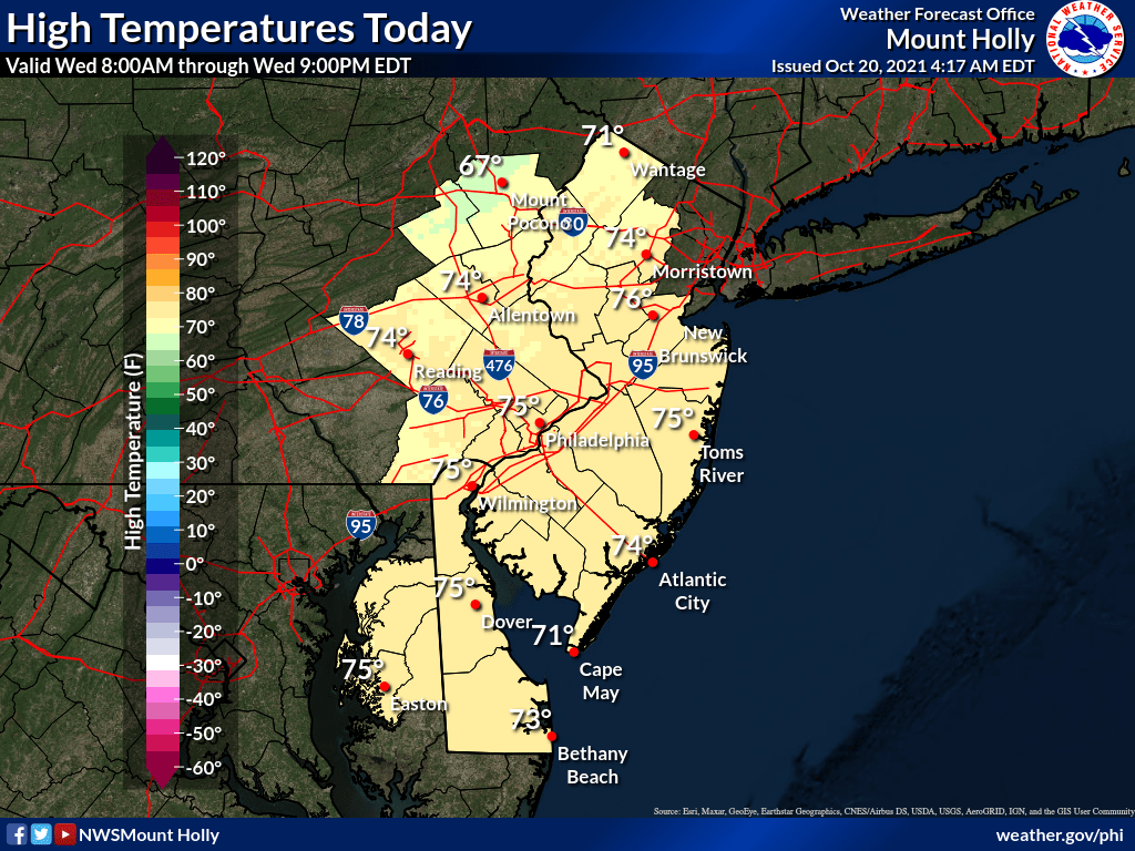 Highs in the mid 70s for Philly. Can’t ask for much more in mid-October.
