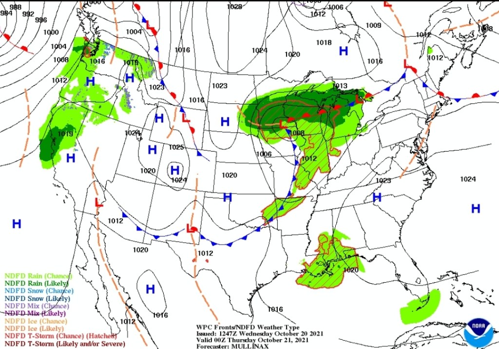 We are keeping an eye on a big system over the Plains. It’s still about 2 days away from bringing rain to our area. This forecast chart is for today into early Friday.
