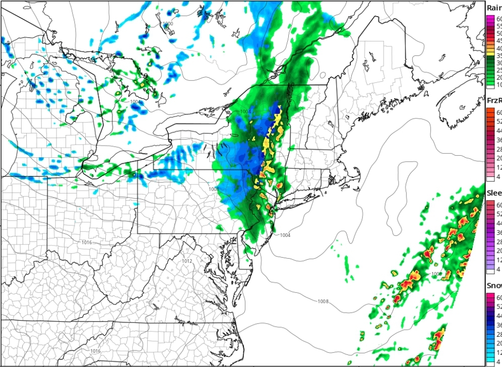 We could see some brief period of moderate snowfall in NEPA. The FV3 showing some storms popping up with the boundary this afternoon. These storms could produce gusty winds. Some snowfall is expected but little in the way of accumulations for NEPA.