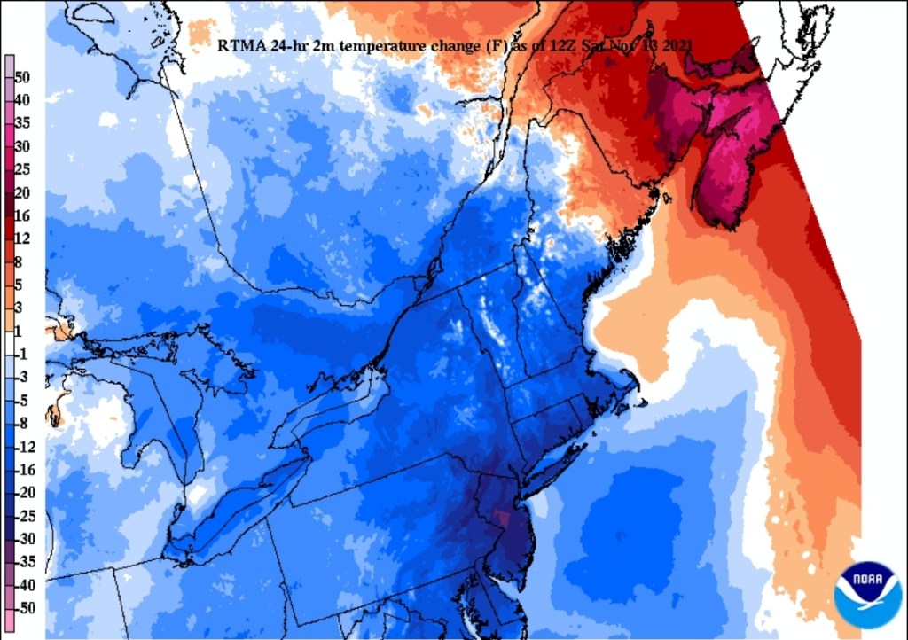We have cooled off a bit this morning compared to yesterday at this time. However, with the boundary strengthening on approach we will get some warmer air aloft and that may heat us up during the day a bit. Philly might touch 60 degrees.
