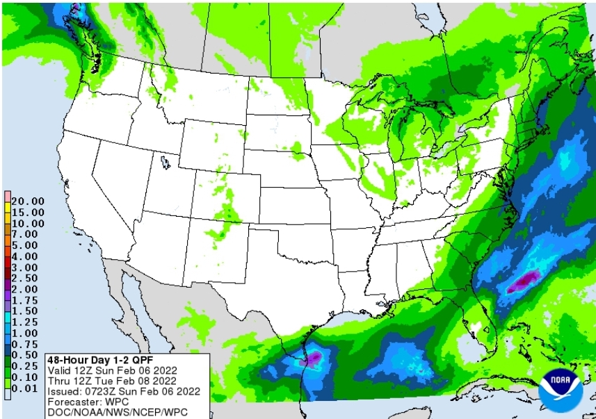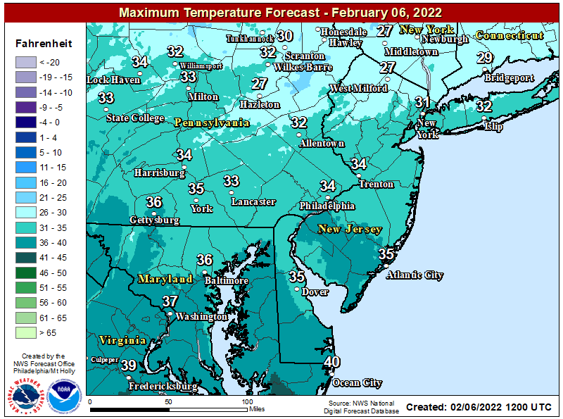There’s a chance for some precip late Mondag into early Tuesday. For now, it looks like mostly rain showers for NJ. Temperatures will be in the mid-30s and precip will be light. Map below shows expected precipitation totals over the next 48 hours.