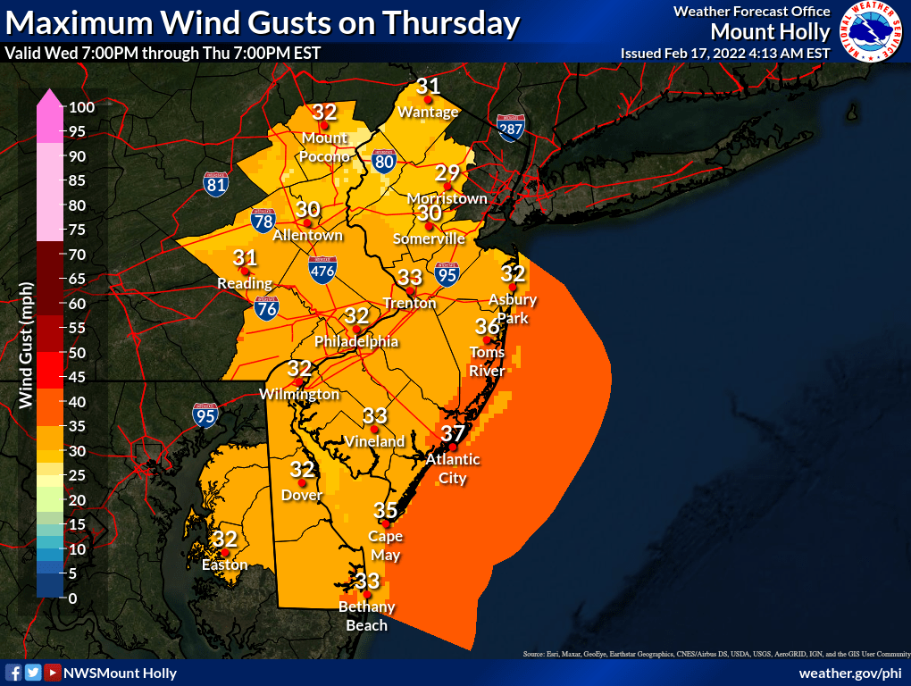 Pressure gradient will be a bit tight around the cold front and strong low level jet at 850mb will push through the area. As a result, wind gusts could reach 30-35 in some rainbands.