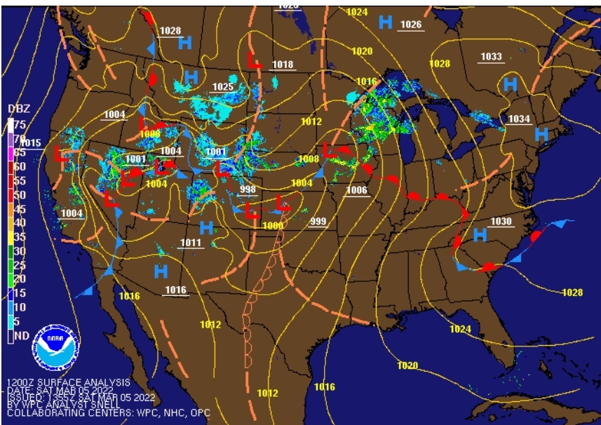 High pressure overhead will move away today and make way for some clouds. Brewing storm over the Plains with warm front moving through the Ohio Valley. This warm front will create some showers tomorrow as it lifts north of our area.