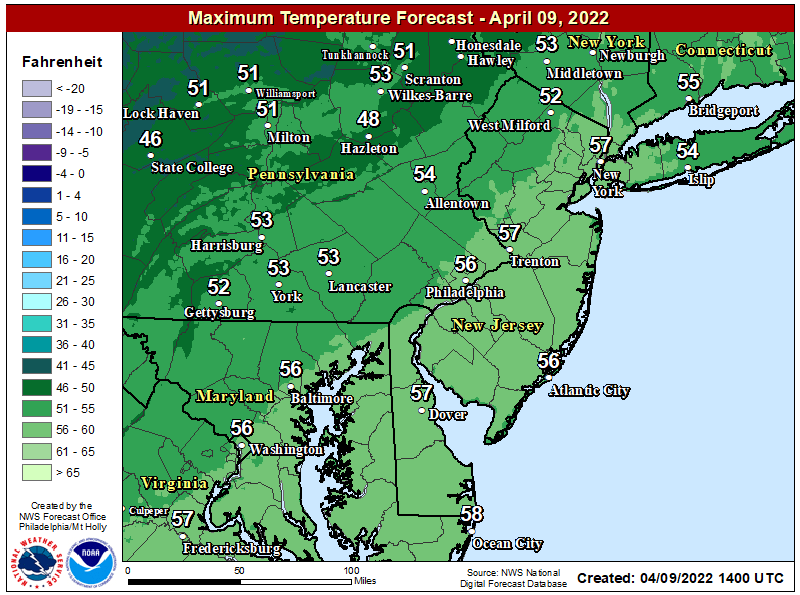 - Highs in the mid-50s