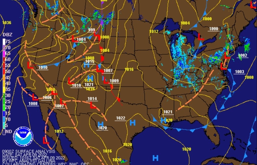 The main cold front has moved through, but weak surface low pressure areas associated with a stubborn slow-moving upper level low remain nearby.