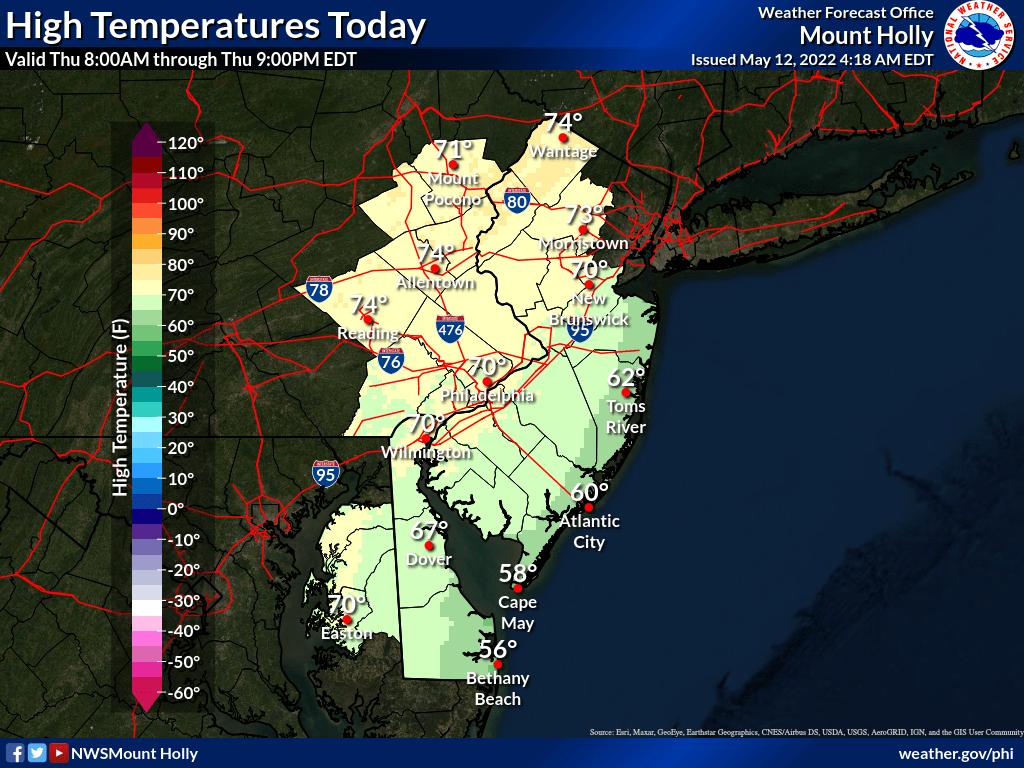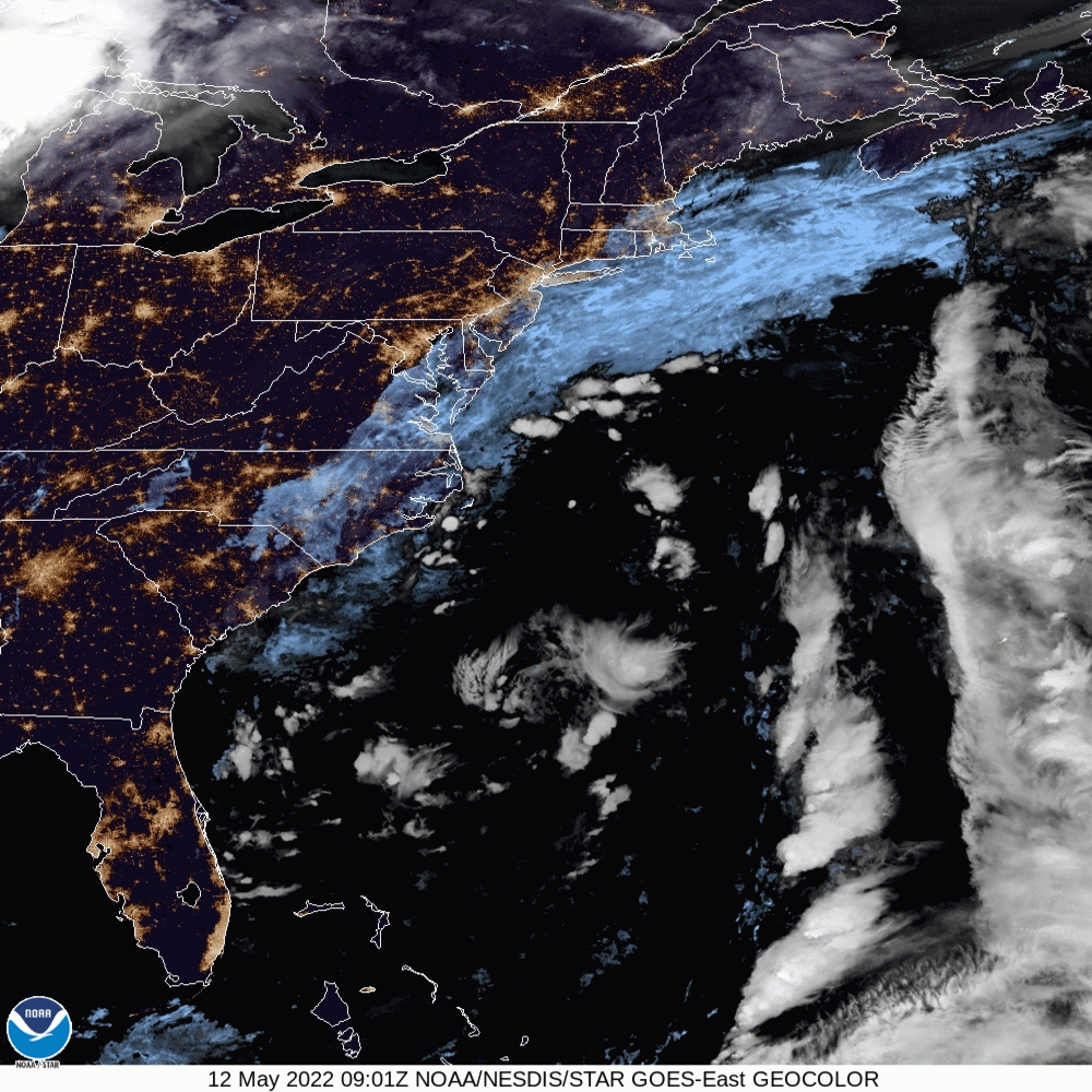 Current satellite imagery shows a very broad and large upper-level low in the Western Atlantic. This will create an onshore flow today with some cloud cover into E PA. This will also keep temps cooler than what was expected earlier in the week. It looked like we might hit 80 by today, but that’s no longer going to happen anymore.