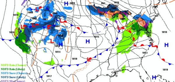 Colder day today Showers and wintry precip moving through Not much accumulations expected Surface Chart Currently we have a large complex moving into the mid-west.